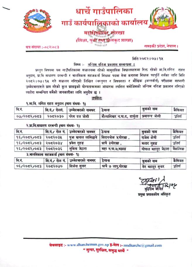 अन्तिम नतिजा प्रकाशन गरिएको सम्बन्धी सूचना।