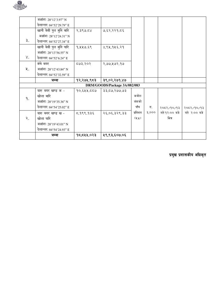 नदिजन्य पदार्थको बिक्रिका लागि बोलपत्र आव्हान सम्बन्धी सूचना ।