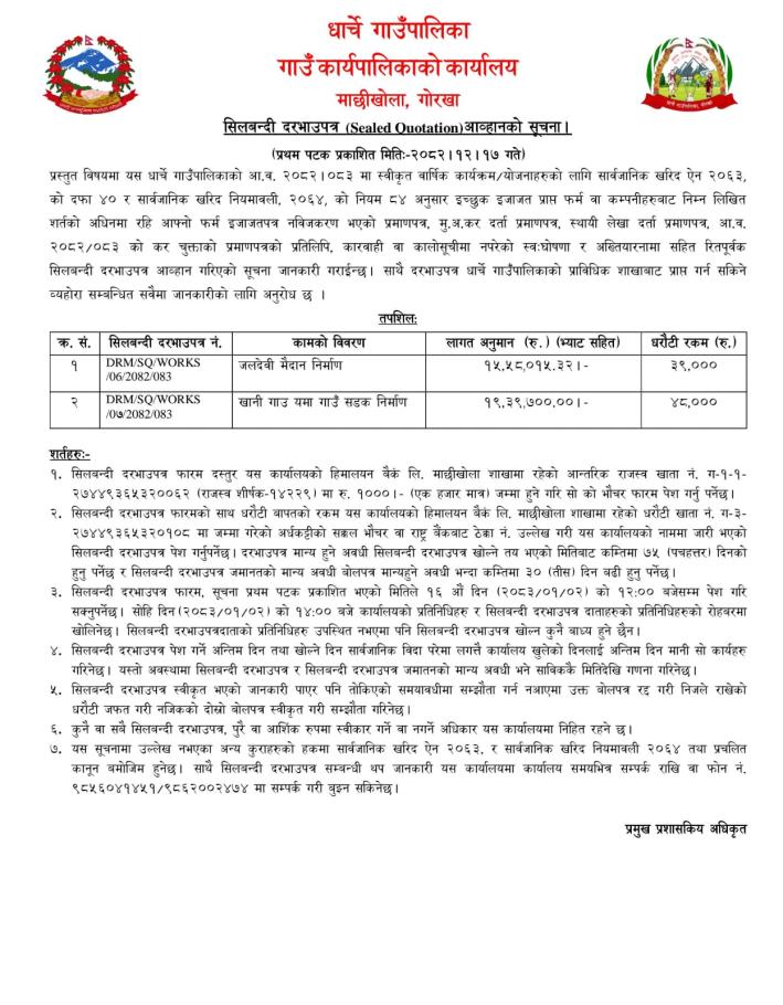 सिलबन्दी दरभाउ आव्हानको सूचना ।