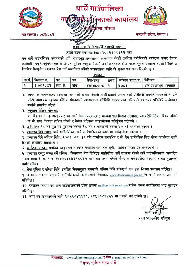 करार कर्मचारी पदपूर्ति सम्बन्धी सूचना ।