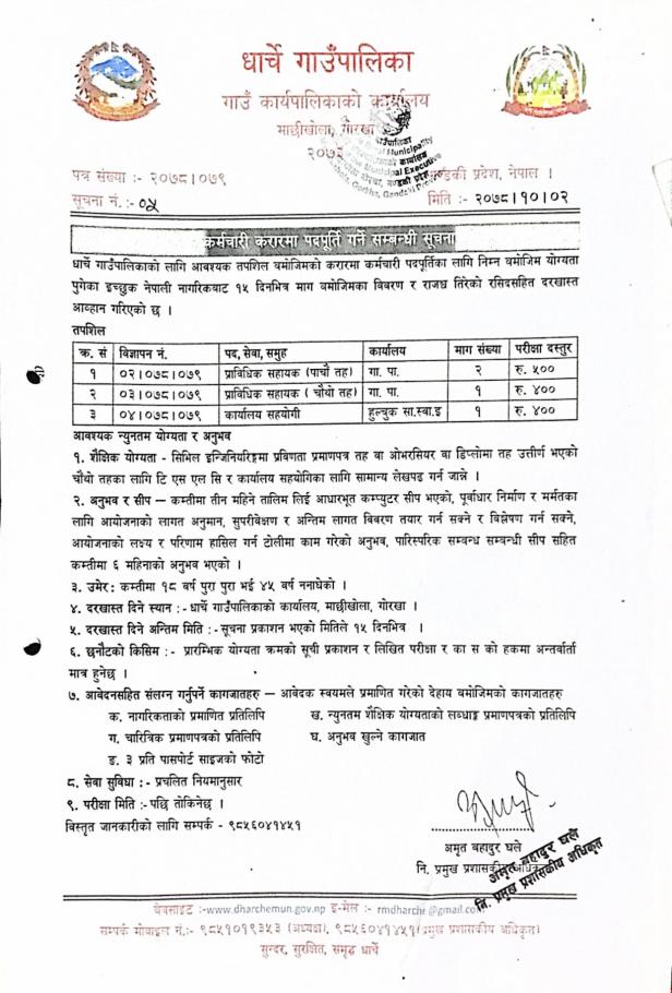 कर्मचारी कारारमा पदपूर्ति गर्ने सम्बन्धि सुचना !!!