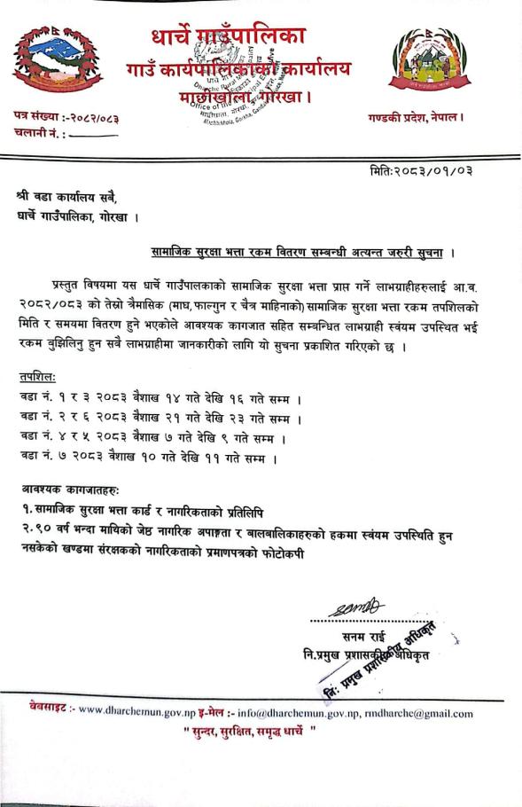 सामाजिक सुरक्षा भत्ता रकम वितरण सम्बन्धी अत्यन्त जरुरी सूचना ।